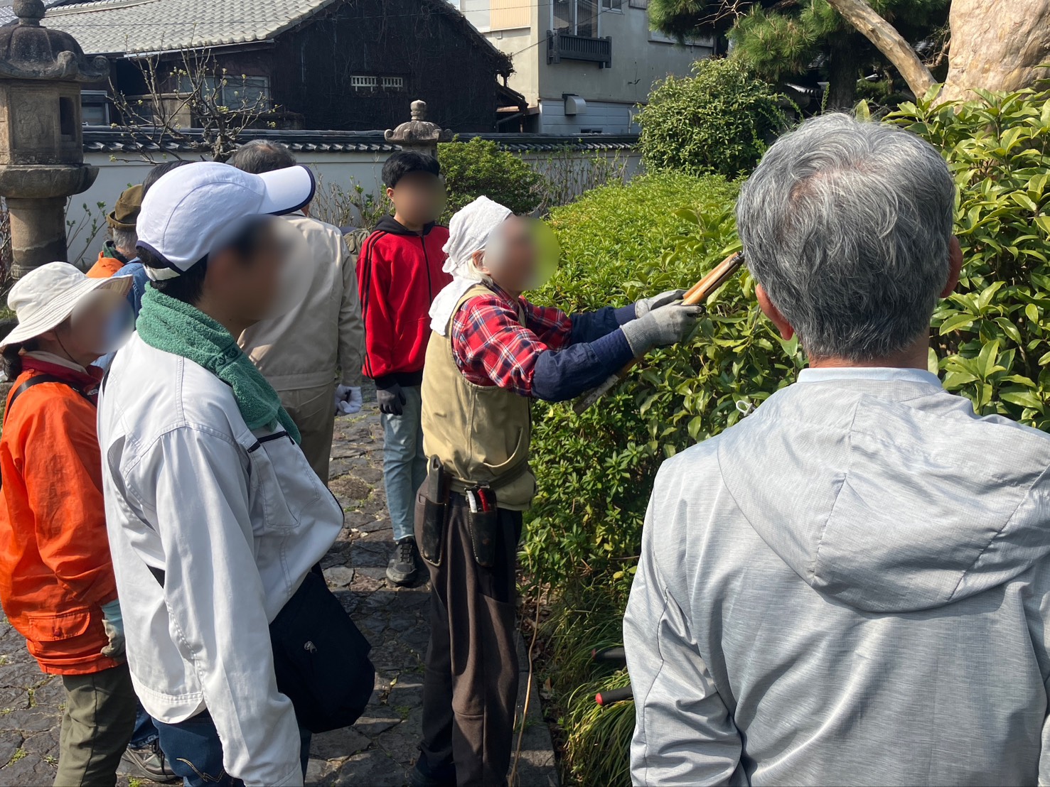 植栽の剪定や雑草刈りなど、境内の整備を進めていただきました。