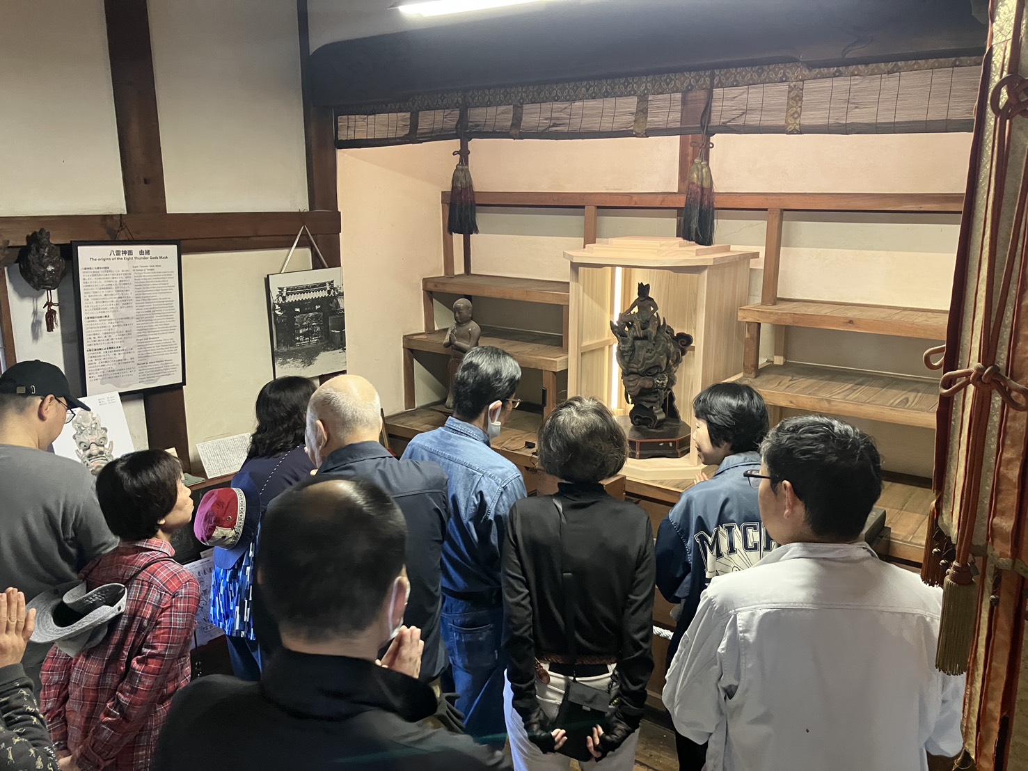また、先日奈良国立博物館よりお戻りいただいた八雷神面も、参加者の皆さまにご覧いただく機会となりました。