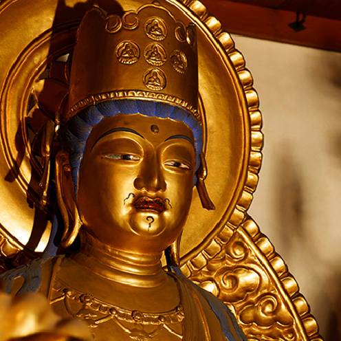 中世・江戸期に盛んであった観音信仰や八雷神面厄除信仰にまつわる寺宝や国宝の薬師如来を継承し、さらに元興寺の起こりを世に伝え続けるべく法相宗の本尊である弥勒仏や日本仏教の祖ともいえる道昭和上像をお祀りさせていただいております。